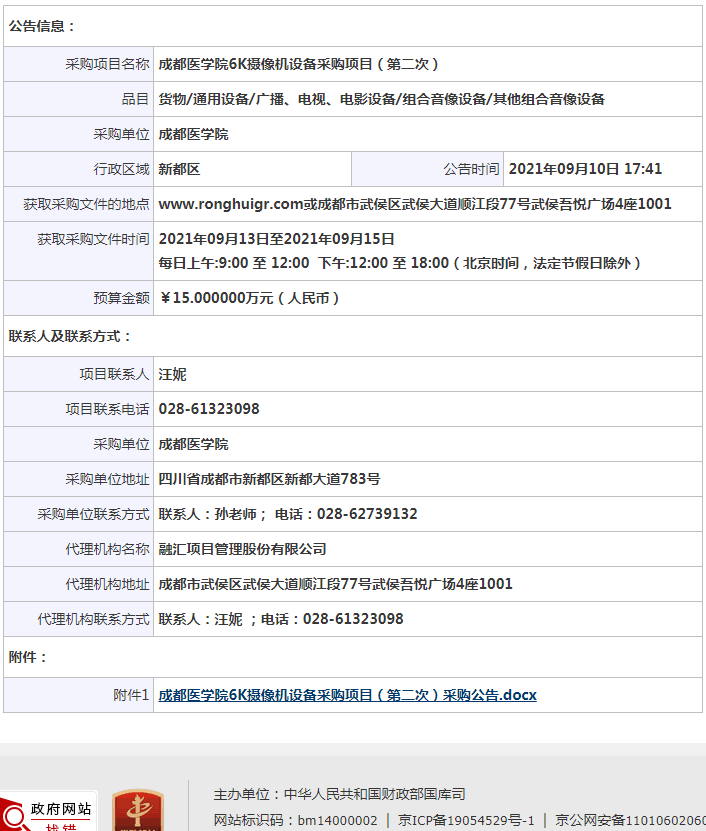 上一条:成都医学院2021年实验室建设第二批专用设备采购项目(第二次)公开招标采购公告 下一条:成都医学院商铺租赁项目招租公告