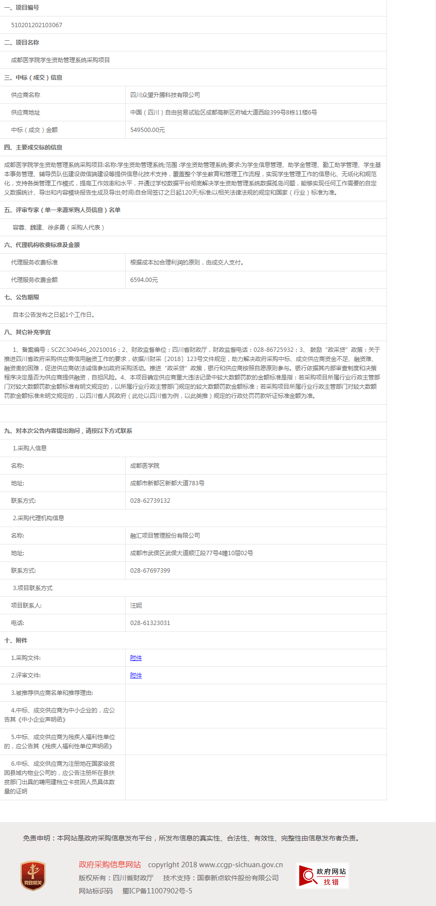 上一条:成都医学院天回校区防水改造工程项目成交公告 下一条:成都医学院继续教育综合服务平台采购项目公开招标结果公告