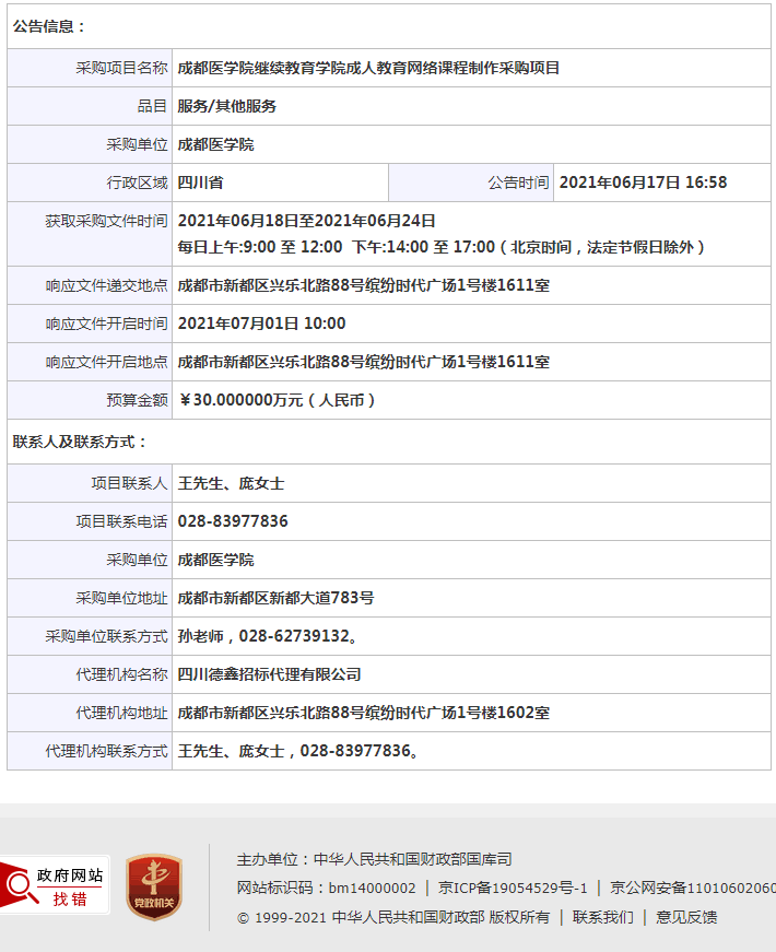 上一条:成都医学院2021年度建筑消防设施维护保养服务采购项目竞争性磋商 下一条:成都医学院10KV配电系统预防性试验及维护保养服务采购项目竞争性磋商