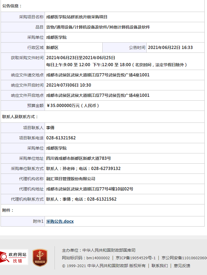 上一条:成都医学院商铺租赁项目招租公告 下一条:成都医学院虚拟化平台及网络安全设备维保服务采购项目竞争性磋商