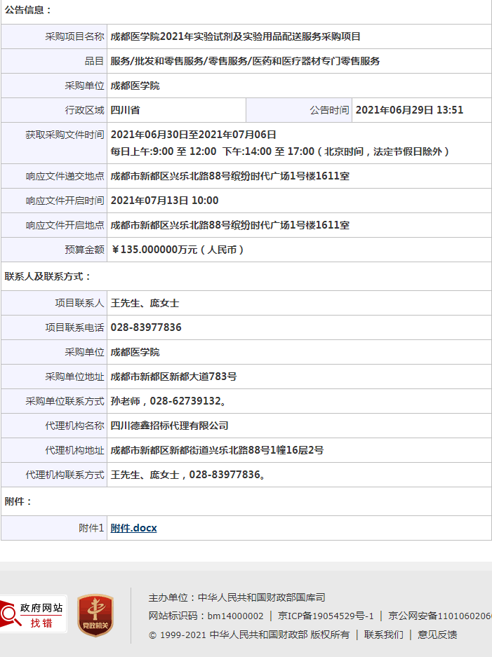 上一条:成都医学院校园无线网络改造(第一期)采购项目竞争性磋商 下一条:成都医学院食堂合作经营项目招标结果公告