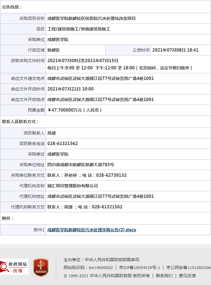 上一条:成都医学院天回校区解剖楼改造工程项目竞争性磋商 下一条:成都医学院教材供应及教学资料印刷服务采购项目竞争性磋商